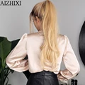 Cheap Offer AIZHIXI Bow Tie Imitation Silk Shirt Satin Blouses Women Autumn Long Sleeves Fashion Solid Casual T with FREE Shipping Worldwide!