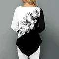 Discount Price Floral Printed Women Shirt Asymmetric Hem Autumn Blouse Shirt For Woman Flower Print Tops O Neck Bl with Free Worldwide Shipping!