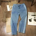 Cheap Offer BIVIGAOS 2019 New Spring Autumn Womens Cropped Jeans Korean Side Stitching Washed Denim Straight Pa with Free Worldwide Shipping!