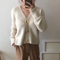 Special Offer FMFSSOM Golden Shiny Button Single Breasted Woolen Women Cardigans Sweater Casual Female Warm Elega with FREE Worldwide Shipping!